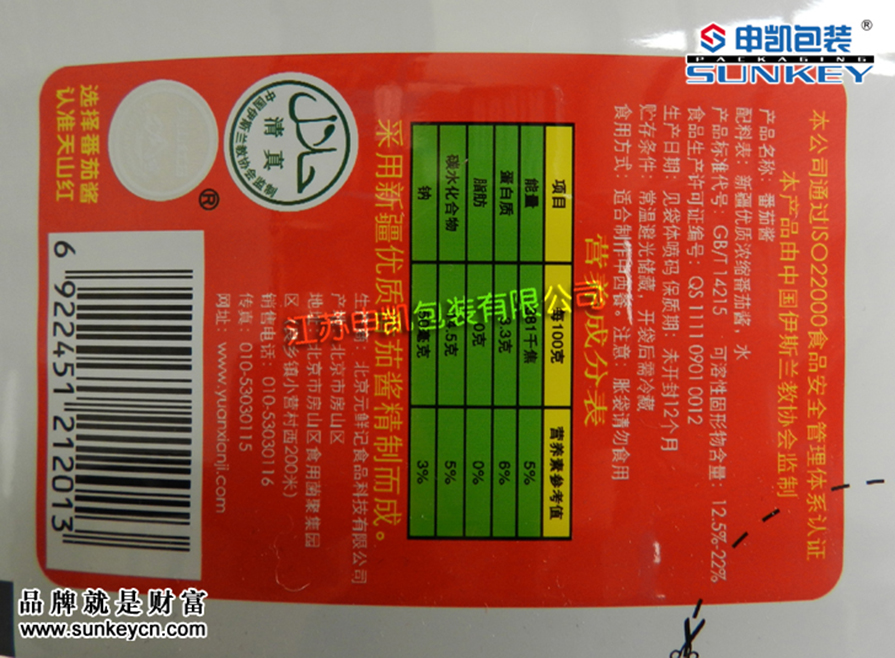 酸性食品包裝|鋁塑包裝膜|番茄醬包裝