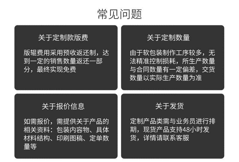 只要用了我們的包裝,不管是包裝膜的問題還是包裝機的問題,都是我們的問題!只要有質(zhì)量問題,馬上召回,不管有多遠!